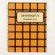 Un patrón juguetón de inspiración vintage con audaces cuadrados de color naranja con bordes negros crudos. Este planificador se puede personalizar con cualquier nombre y año, lo que lo convierte en un regalo reflexivo o un organizador personal elegante.