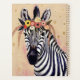 Esta impresión muestra una cebra dulce adornada con una corona de flores | Por Victoria Borges