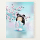 flor de cerezo color turquesa rosa oscuro kokeshi muñeca japonesa chica geisha kimono japón sakura asia nombre de texto floral personalizar decoración oriental asiática para su moda elegante estilo de arte japonés Chibi Kawaii