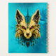 La misteriosa cabeza de zorro, noble y misterioso. El diseño presenta una estilizada cabeza de zorro, artísticamente enmarcada con delicada ornamentación. El zorro se representa predominantemente en un tono dorado elegante, dándole un aura noble y mística. Los acentos negros enfatizan los contornos y detalles del zorro, resaltando su forma y su expresividad. Los ojos rojos penetrantes crean un contraste intenso y le dan al zorro una mirada penetrante, casi hipnótica.