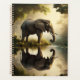 Planificador de elefantes. Un bonito sereno ilustracion ai de un elefante parado en el bosque reflejando en el agua. Una tranquila pieza de arte para relajarse. La espalda tiene un patrón de elefantes.