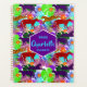 Un bonito diseño moderno, luminoso y colorido con hojas tropicales, flores y leopardos. No te olvides de personalizar con un nombre personal.