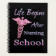 Una divertida escuela de Enfermería, la vida comienza después del diseño de enfermeras de la escuela de Enfermería con un símbolo médico de Caduceus. Esto es el regalo perfecto para una enfermera registrada, RN, estudiante de enfermería o LPN.