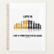 Muestra tu irracional actitud de ajedrez retorcida con este planificador que presenta un juego de ajedrez reflexivo junto con el dicho "La vida es como un juego de ajedrez torcido". ¡El planificador del humor de ajedrez geek para cualquiera que conozca las similitudes entre la vida y el ajedrez!