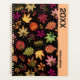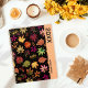 Un patrón botánico de bonito para los que aman la caída con hojas de otoño dibujadas a mano en marrones, amarillos y verdes sobre un fondo negro. ¡personalizar el año y la fecha!