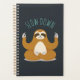 Ilustracion gracioso de una tierna pereza sosteniendo una pose de yoga de loto y las palabras "Despacio" en letra manuscrita.