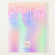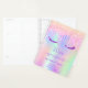 Un fondo de color iridiscente a la moda con unicornio y colores pastel de arcoiris en rosa, violeta, verde menta. Decorada con gotitas en pestañas rosas, violetas y violetas. Un planificador de citas para maquilladores, diseñadores de cabello, peluquerías y salones de belleza. Letras de color púrpura.
