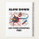 Muestra tu lado neurológico irracional con una dosis de actitud geek de la biología con este planificador que presenta todas las partes clave de una neurona / sinapsis junto con el consejo de sonido para todos los que piensan y hablan muy rápido: "Lentamente, deja que se disparen tus sinapsis".