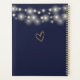 Elegante planificador de bodas azul marino y dorado con luces de cuerdas de bonito y nombres de estilo característico. Diseñado por Thisisnotme©