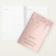Un fondo dorado rosa con elegantes goteos de oro rosa y rosado, pinturas que gotean. Plantilla de un año. Personalice y agregue un nombre y un título. El nombre está escrito en oro rosa oscuro con una escritura de estilo moderno con letras a mano. Perfecto para negocios, escuela, trabajo, diario u organización de su vida personal/familiar.