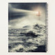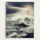 Esta foto muestra una faro que brilla con un clima tormentoso y olas que se estrellan.