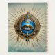Símbolo del ojo alistador egipcio, el Ojo de Horus. El iris de los ojos brilla en un azul profundo y brillante que recuerda a los cielos claros del desierto. La imagen general transmite una sensación de sabiduría, protección y espiritualidad, cualidades asociadas con el ojo que mira todo