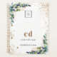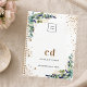 vegetación eucaliptos y follaje de oro falso. Elegante fondo blanco. Personalice y agregue su logotipo de negocio, iniciales de monograma, nombre y texto.