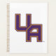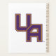 El logo de las iniciales de la Universidad de Albany presenta un diseño audaz y dinámico de "UA", representado en el púrpura distintivo de la universidad y delineado con una sorprendente frontera dorada. Las letras angulares, de estilo bloque, le dan al logo un aspecto fuerte y autoritario, perfecto para representar el orgullo y la identidad de la escuela. La estructura simétrica y geométrica de las letras transmite una estética moderna y profesional.