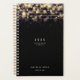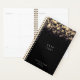 El planificador de la moda de negro rico con una espina dorada presenta tiras entrecruzadas de luces de cuerda dorada con un efecto bokeh borroso. Personalizar con cuatro líneas de texto personalizado, haciendo de este planificador una elección perfecta para empresas, citas o tareas diarias.