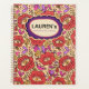 The cover showcases a bold repeating motif of protective eyes, blooming florals, and symbolic elements inspired by themes of luck, prosperity, and creative energy. At the center, a decorative badge highlights personalized text, making this journal a meaningful keepsake or thoughtful gift.