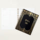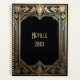 Este bonito planificador art deco tiene un marco dorado con hojas y elementos geométricos sobre un fondo negro. Muy elegante, retro y lujoso.