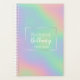 Colores de arcoiris ondulado con un efecto holográfico falso, colorido y de moda. El metalizado de imitación plateado muestra un marco alrededor de su Nombre y Texto en letras de letras blancas modernas.