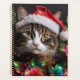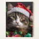 Un gato lindo vestido con un traje de santa Claus con un fondo floral, diseño vintage