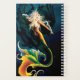 Una sirena de cabello blanco con un dragón verde oscuro juntos en el océano