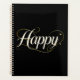 A sleek and elegant "Happy" design featuring ivory lettering accented by thin, sophisticated gold swirls and dots. This minimalist yet classy artwork is perfect for a refined and timeless aesthetic