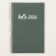 Empiece 2026 con el estilo de este moderno y minimalista planificador. Con una cubierta verde con letras en negrita en blanco "Hello 2026", este planificador es perfecto para todo aquel que ame un diseño limpio y de moda mientras está organizado. Su estética moderna y elegante la convierte en un destacado accesorio de escritorio o en un regalo para amigos, familiares o compañeros de trabajo que aman la organización y la productividad. El texto es personalizable.
