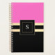 Moda negra y rosa con rayas doradas amarillas y planeamiento de monograma blanco para un estilo elegante. Es fácil de personalizar y hacerlo propio. Perfecto para regalos elegantes, cumpleaños, oficina, escuela y planificación diaria.