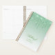 Este planificador de modas presenta un borde de goteo de purpurina falso verde brillante y un fondo sombrío verde. Personalízalo con su nombre en un guión elegante sobre un divisor de diamantes verde. Las palabras "2024 Planner" u otro texto de su elección aparecen en la fuente sans serif a continuación.