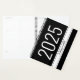 Planner personalizado sin fecha en blanco y negro con una franja simple y un año de impresión grande y un nombre de guión de broche divertido o tema de personalizado o título impreso en la portada. Elija un nuevo color de fondo para la cubierta frontal y posterior haciendo clic en "personalizar más adelante".