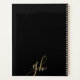 Moderno planificador de espiral personalizado con elegantes y elegantes iniciales de guión de caligrafía o monograma y nombre en su elección de colores (se muestra en falso oro y blanco contra un fondo negro editable). CAMBIOS: El estilo del tipo de letra del texto, el color, el tamaño, el espaciado y la posición pueden cambiarse pulsando en el botón EDITAR de la sección PERSONALIZAR para obtener un aspecto personalizado. OPCIONES DEL PLANIFICADOR: Elija la cubierta dura o blanda y el color del cable en la página de pedidos. ASISTENCIA: Para obtener ayuda con la modificación o personalización del diseño, el cambio de color, el redimensionamiento, la transferencia del diseño a otro producto o si desea coordinar elementos, póngase en contacto con el diseñador ANTES DE PEDIDOS a través de la pestaña del MENSAJE de charla de Zazzle, o envíe un correo electrónico a makeitaboutyoustore@gmail.com.
