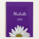 Moderno planner floral morado 2025, con margarita blanca y diseño de escritura elegante. Con letras en personalizable blanco, puede añadir su propio nombre y año. Una forma moderna de añadir un toque botánico a la organización.