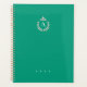 Este planificador de espiral de tapa dura presenta un moderno escudo botánico personalizable con un monograma y un año en la parte delantera y un patrón a cuadros en la parte posterior para añadir más personalidad.