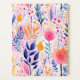 Personalice este capricho con su nombre en cursiva azul marino enmarcada por un rectángulo blanco, sobre un fondo atrevido y colorido de elementos florales y botánicos pintados a mano en tonos azules, rosas y naranjas.