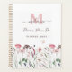 Este planificador bohemio presenta un nombre de escritura personalizado, monograma, cita inspiradora, y hermosos cachorros rosados, hierbas y una mariposa sobre un fondo blanco. Un regalo ideal para los amantes de la naturaleza romántica.