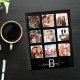Haz tu propio collage de fotos de familia como regalo o para ti mismo. ¡Usa cuatro, nueve de tus fotos favoritas de tu familia, amigos, destino de viaje de ensueño o mascota! Personalice y agregue un nombre y su letra de monograma. El nombre está escrito con un guión moderno de estilo con letras a mano con toques. Texto en blanco y gris. Un fondo negro moderno. Para que los cambios sólo eliminen el nombre del ejemplo, deje los espacios o la emoji delante y después del nombre.
