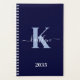 Este sencillo y elegante planificador suave azul marino 5.5 x 8.5 con tu primer nombre en un tipo de letra de escritura a la moda en blanco tecleado sobre tu primera inicial en un moderno tipo de letra de tope en azul claro es perfecto para ti. Es de diseño y a la vez muy clásico. Hará que mantener citas, reuniones, fechas límite, tareas sea fácil para hacer un seguimiento y simplificar tu vida.