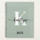 Este sencillo y elegante delineador de sabios verde 8.5 x 11 con tu nombre en un tipo de letra de guión moderno en negro y tu primera inicial en un tipo de letra de tope moderno en blanco es perfecto para ti. Es de diseño y a la vez muy clásico. Hará que mantener citas, reuniones, fechas límite, tareas sea fácil para hacer un seguimiento y simplificar tu vida.