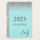 Cuaderno en espiral con monograma y nombre de lentejuelas plateadas de azul teal y acuático de 2023. Esto hace que el regalo perfecto para alguien que ama el lujo glamoroso y los estilos chic sea para cumpleaños dulces de 16 años, bodas, duchas de novia, aniversarios, duchas de bebé o fiestas de despedida de soltera.