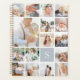 Personalizar este planificador de moda con 16 fotos cuadradas dispuestas en un collage de cuadrícula, con un monograma inicial en un cuadrado gris de niebla en la parte inferior derecha. La cubierta posterior tiene un tono de franjas de tono en gris claro.