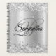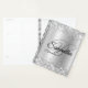 Purpurina plateado fino y brillante con brillo contra una imagen gráfica de Relieve metalizado gris pálido. Se puede personalizar el lujoso monograma de caligrafía del centro. Todos los elementos brillantes y brillantes de este moderno diseño giratorio son gráficos digitales. Un regalo precioso para su cumpleaños.