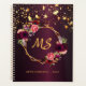 Un oscuro fondo burdeos de aspecto metálico con falsas estrellas doradas. Decorada con un marco geométrico de oro falso y flores de color burdeos, rosa y rosa dorado. Personalice y agregue sus letras de monograma, iniciales. Perfecto para la escuela, el trabajo o la organización de su vida personal/familiar.