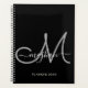 Moderno y moderno personalizado de escritura femenina negra y gris, nombre personalizado y monocromático planificador. Este sencillo y elegante diseño presenta una plantilla de primer nombre en blanco con letras cursivas a mano con toques en blanco y un enorme guión inicial en monograma escrito a mano en color gris sobre fondo negro. Este cuaderno femenino de bonito es una idea perfecta para los negocios, los profesionales, la escuela, la fiesta de cumpleaños, el boda y cualquier fiesta o ocasión para alguien a quien le guste el estilo femenino y moderno.