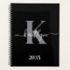 Este sencillo y elegante planificador negro 8.5 x 11 suave con tu nombre en un tipo de letra de guión moderno escrito en blanco sobre tu primera inicial en un moderno tipo de letra de tope en gris es perfecto para ti. Es de diseño y a la vez muy clásico. Hará que mantener citas, reuniones, fechas límite, tareas sea fácil para hacer un seguimiento y simplificar tu vida.