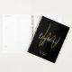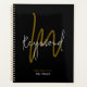 Planificador personalizado con su nombre impreso en un estilo de letra manuscrito... con el fondo negro inicial en la parte posterior...