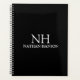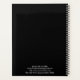 Moderno planificador de negocios con un diseño sencillo y mínimo en negro con su monograma en negrita junto con su nombre en el frente. La parte posterior tiene su información de contacto.