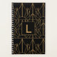 Agenda Monograma Oro y Patrón Art Decó Negro
