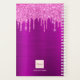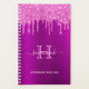 Un elegante fondo violeta femenina y femenina, con purpurina falso rosado, goteo, goteo, goteo. Personalice y añada su nombre, letra de monograma y un título. Un planificador para organizar clientes de negocios, citas, listas o tu vida diaria. El nombre está escrito con un gran guión escrito a mano con letras a la moda y chispas. Para que los cambios sólo eliminen el nombre del ejemplo, deje los espacios o la emoji delante y después del nombre. Letras rosa claro y violeta.
