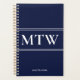 Puede editar el texto en blanco para mostrar el monograma correcto. Las líneas blancas están encima y debajo del texto. La cubierta es azul oscuro a medianoche.