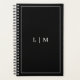 Sencillo planificador de negocios negro con un diseño moderno y elegante con su monograma de dos letras rodeado por un borde. El reverso tiene su información de contacto. Este planificador personalizado de estilo minimalista es ideal para cualquier tipo de negocio.