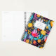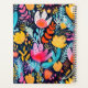 Personalice este capricho con su nombre en cursiva azul oscuro enmarcada por un rectángulo blanco, sobre un audaz y colorido patrón de fondo de elementos florales y botánicos pintados a mano en tonos turquesa, rosa y amarillo.